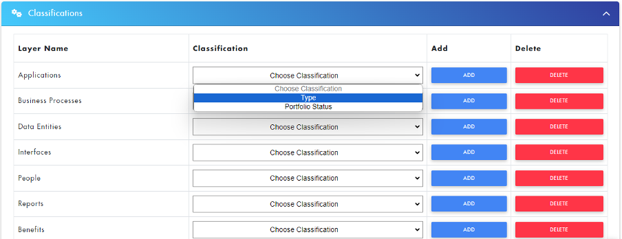 For classifications, choose the drop down next to each layer, select the required classification and choose Add. This needs to be done for each item in the drop down list one by one.