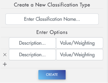 Here you can create a new classification by entering a classification name and the options available for the classification.