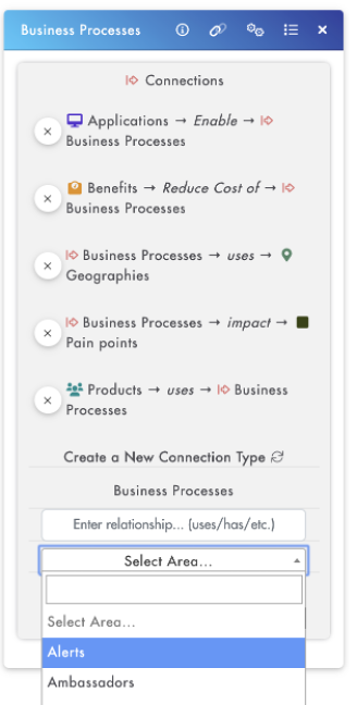 Note: If there are multiple connection relationships available between two items you will be prompted to select the one you wish to create.
