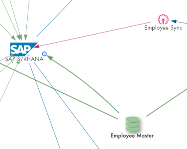 A line can then be dragged between the two items to connect them. Here we’re creating a link between Employee Master and SAP S/4HANA: