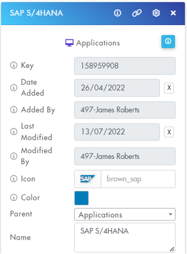 button to expand the details further to see audit information and to set an icon and colour if required: