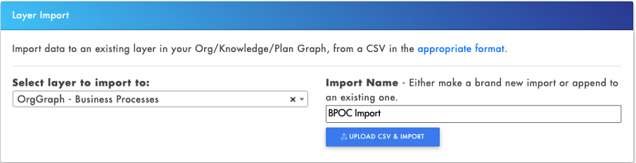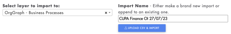 Once the Import Layer has been selected and the import has been named click the Upload CSV & Import button.