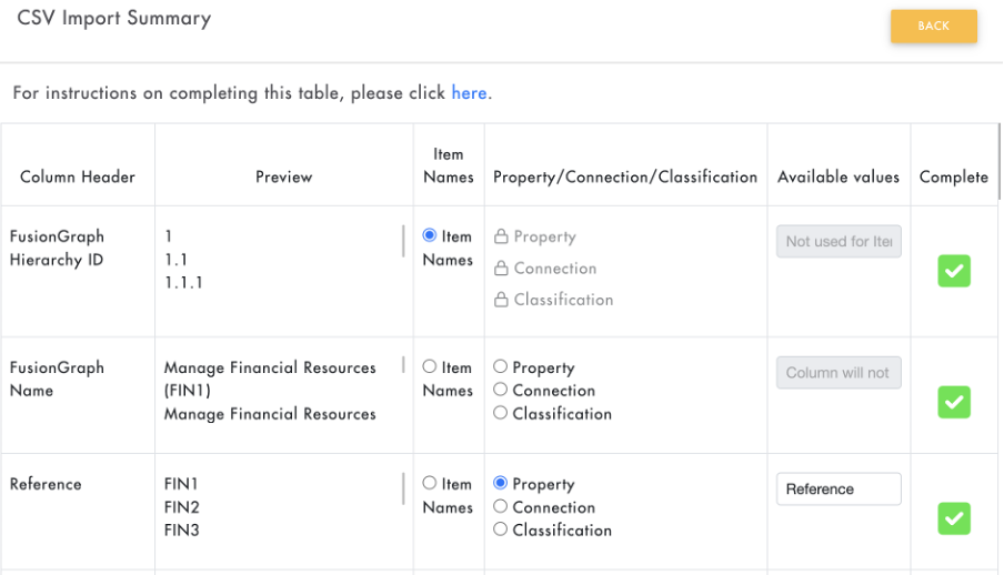 Each column in the CSV file can be seen as a row in the CSV Import Summary screen.