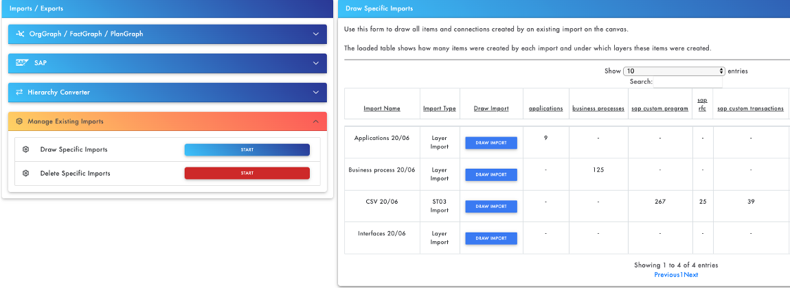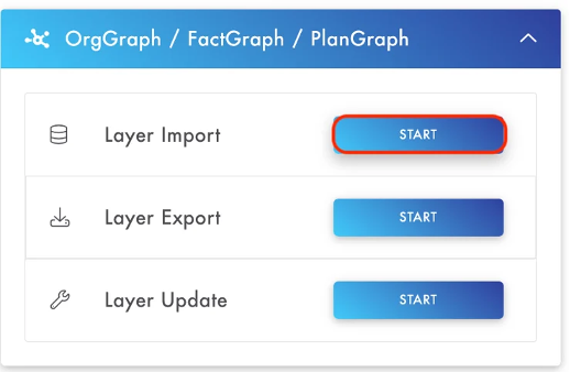 Under the OrgGraph, FactGraph, PlanGraph section click Start for Layer Import.