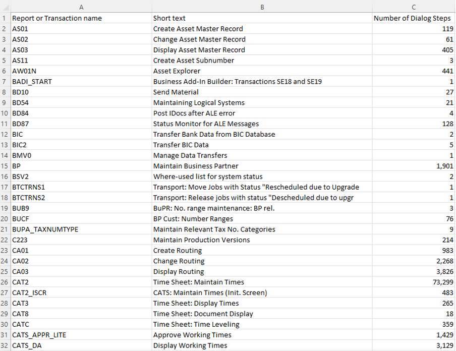 The ST03N transaction allows SAP usage data to be exported from SAP. This provides an overview of which transactions and programs are being used by the customer and also includes custom code.