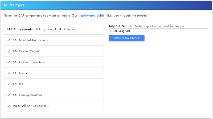 Components selected will be imported. Also give your ST03N Import a unique name.